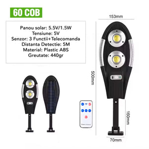 - Control: Telecomandă cu multiple funcții (ON/OFF, 3 moduri de iluminare)
