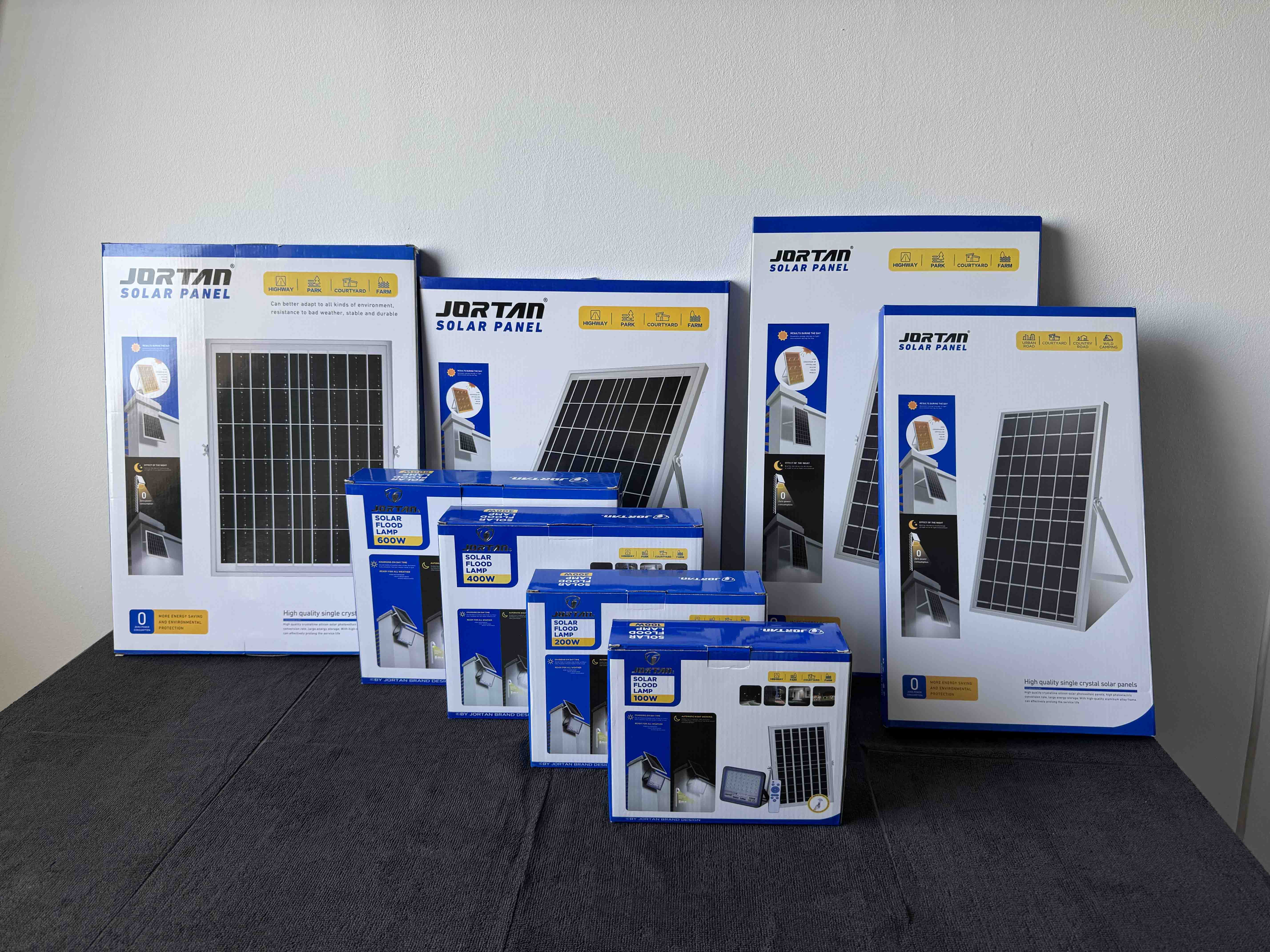 - Panou solar policristalin 6V 8W: Proiectorul Jortan este echipat cu un panou solar policristalin de 6V și 8W pentru încărcare rapidă, care încarcă complet bateria în 4-6 ore (în funcție de lumina solară).